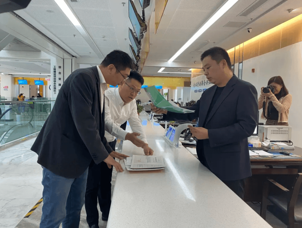 10月22日下午,在泰興市政務(wù)服務(wù)中心,賽銘電器有限公司負(fù)責(zé)人張建一次性拿到了用地規(guī)劃許可證、不動產(chǎn)權(quán)證、人防工程建設(shè)意見書、建設(shè)工程規(guī)劃許可證、施工圖審查合格證、消防備案證、建筑工程施工許可證共7個證件。