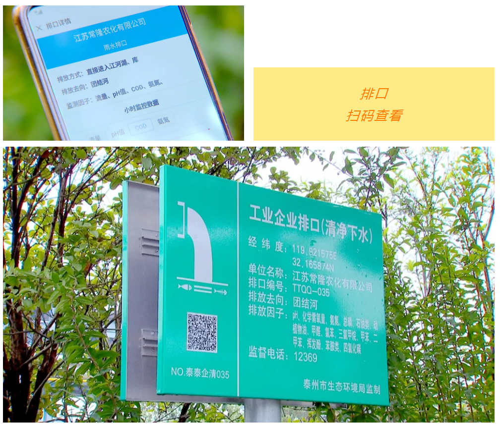 泰興經(jīng)濟(jì)開發(fā)區(qū)實(shí)施入河排污口截污控制工程,所有企業(yè)排污口均懸掛明顯的入河口標(biāo)志牌,每一個(gè)排放口印上二維碼,人人都可通過(guò)這些二維碼了解排放口信息,隨手舉報(bào)偷排行為。