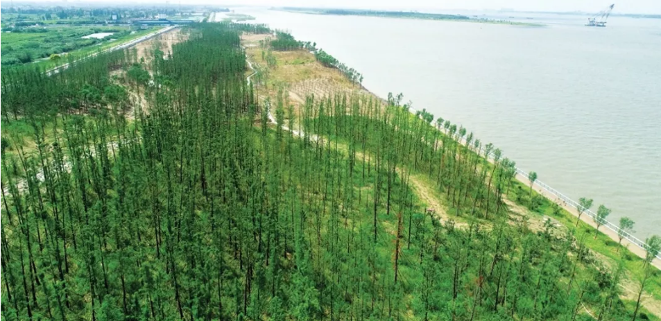 泰興市長江生態(tài)濕地和綠色廊道工程按照綠地、濕地、林地共建,生態(tài)效益、經(jīng)濟(jì)效益、景觀效益結(jié)合的要求,采取了堤外理坡、理水,退漁還濕,“高灘建設(shè)林帶,低灘栽植水生植物”的模式恢復(fù)江灘濕地風(fēng)貌。堤頂按照百年一遇防洪要求拓寬改造。堤內(nèi)50米植樹造林,形成生態(tài)林帶,并適當(dāng)增加了適合百姓休閑的小型游園。廊道工程總計(jì)恢復(fù)濕地3000畝、造林1200畝。2019年10月,泰興國際半程馬拉松比賽就在綠樹環(huán)繞的江堤上成功舉行,讓曾經(jīng)“近水不親水”的長江江堤變成了市民可以“近水親水”的生態(tài)賽道。