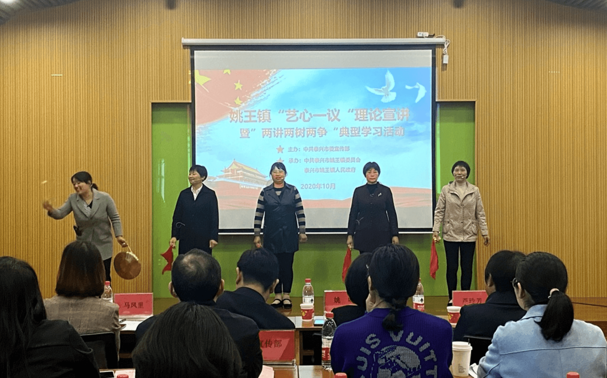 “將《習(xí)近平談治國理政》第三卷這一鮮活教材作為基層理論宣講的重要內(nèi)容,理論宣講與群眾文藝融為一體,給人民群眾帶來了走心入腦的文化享受,這樣的理論宣講對口味、有趣味、能回味。”泰興市委宣傳部負責(zé)人表示。近日,泰興市委宣傳部、姚王鎮(zhèn)黨委開展了“藝心一議”理論宣講暨“兩講兩樹兩爭”典型學(xué)習(xí)宣傳——“習(xí)語情深暖民心,頭雁領(lǐng)飛戰(zhàn)脫貧”專場活動,依托新時代文明實踐站為群眾奉上一份“理論宣講+文藝演出”的視聽“大餐”。
