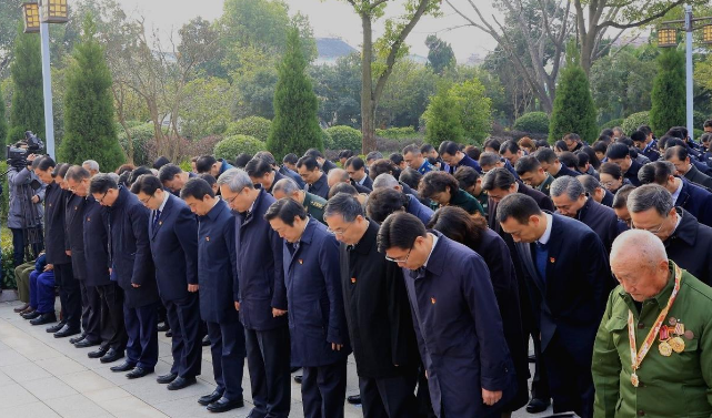 中共江蘇省委宣傳部、江蘇省退役軍人事務(wù)廳負(fù)責(zé)人;泰州市四套班子和軍分區(qū)負(fù)責(zé)人;泰興市四套班子和人武部負(fù)責(zé)人;泰州市有關(guān)部門主要負(fù)責(zé)人,各市(區(qū))宣傳部門、退役軍人事務(wù)部門主要負(fù)責(zé)人;遼寧省丹東市抗美援朝紀(jì)念館負(fù)責(zé)人,楊根思連所在部隊(duì)、楊根思烈士戰(zhàn)友及相關(guān)代表;泰興籍參加抗美援朝出國作戰(zhàn)志愿軍老戰(zhàn)士和退役軍人代表,以及泰興市社會(huì)各界群眾代表參加祭掃緬懷活動(dòng)。 |