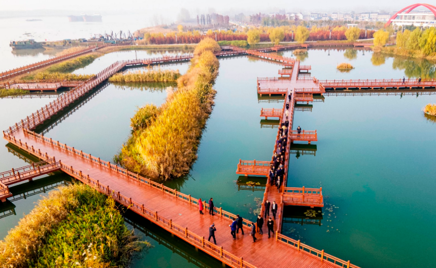 “船廠變森林”“魚塘變濕地”“工廠變公園”“江堤變賽道”,拆除6家小船廠、23個魚塘、53座建筑物和構(gòu)筑物,關(guān)閉小化工等企業(yè)20多家,建成12公里長江生態(tài)濕地和綠色廊道。累計騰退岸線6.4公里,江堤內(nèi)恢復(fù)濕地3000畝,植樹造林1200畝,并讓江堤“固若金湯”加持“風(fēng)景如畫”。