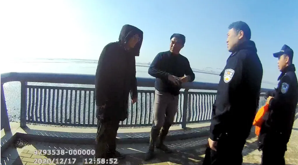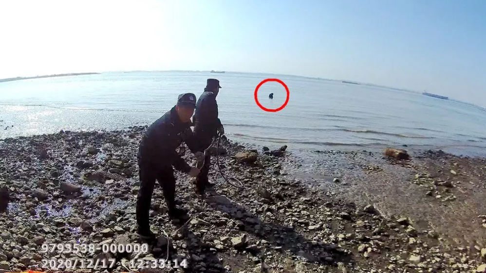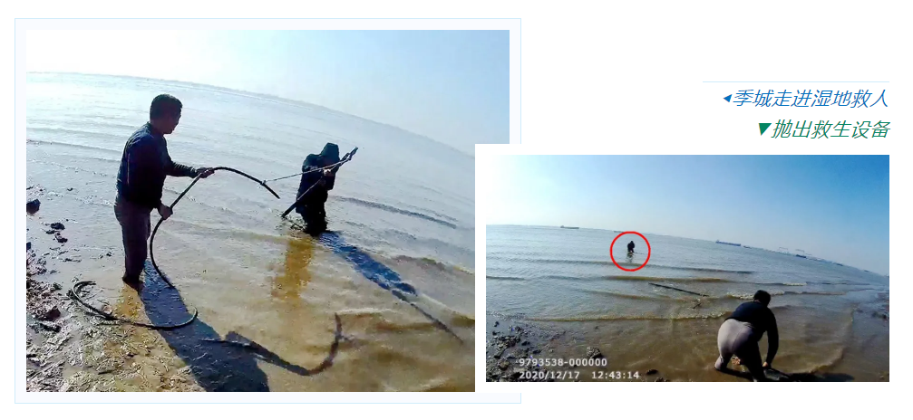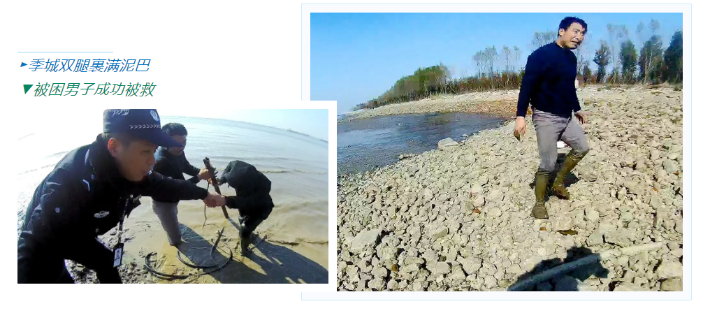 經(jīng)過數(shù)十次的嘗試,被困男子成功抓住繩子上的木棍,被救上了江岸。此時季城的雙腿已被泥巴裹滿,被同事扶上岸邊的他全身還在哆嗦。