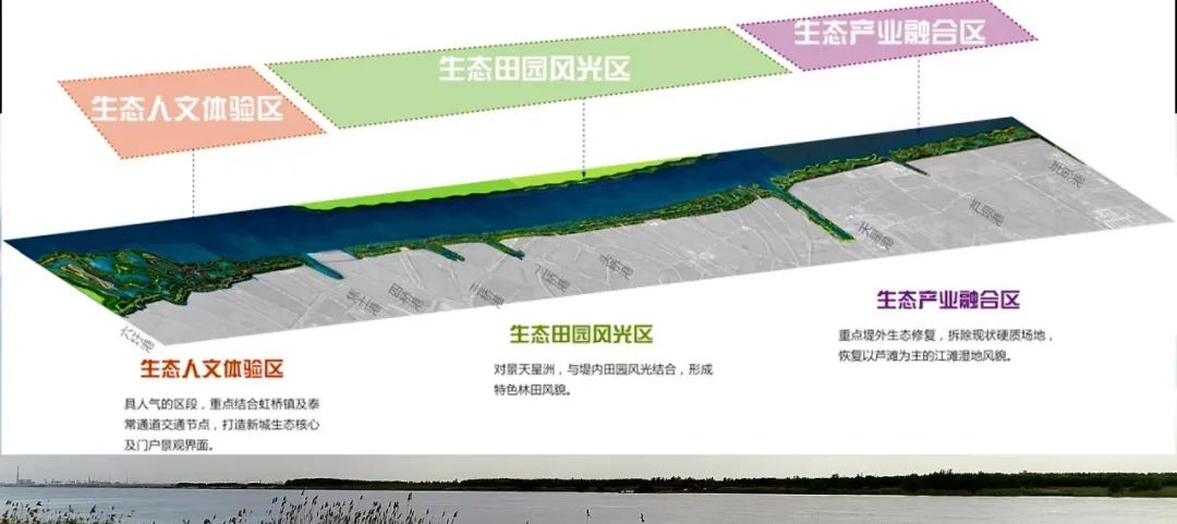 將12公里生態(tài)林帶劃分為生態(tài)產(chǎn)業(yè)融合區(qū)、生態(tài)田園風光區(qū)、生態(tài)人文體驗區(qū)。