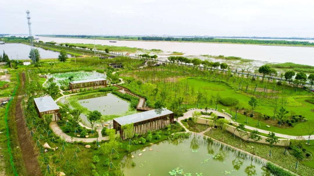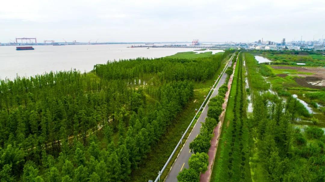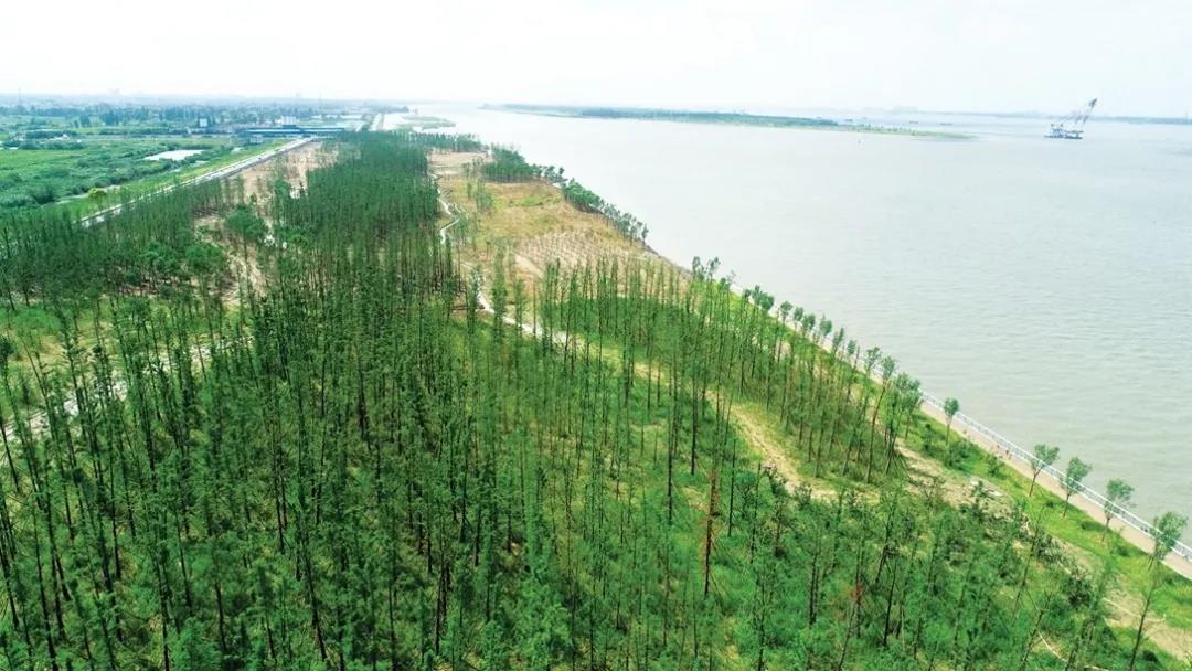 泰興長江生態(tài)濕地和綠色廊道工程北起洋思港,南近六圩港,全長12公里,總綠化面積280萬平方米。