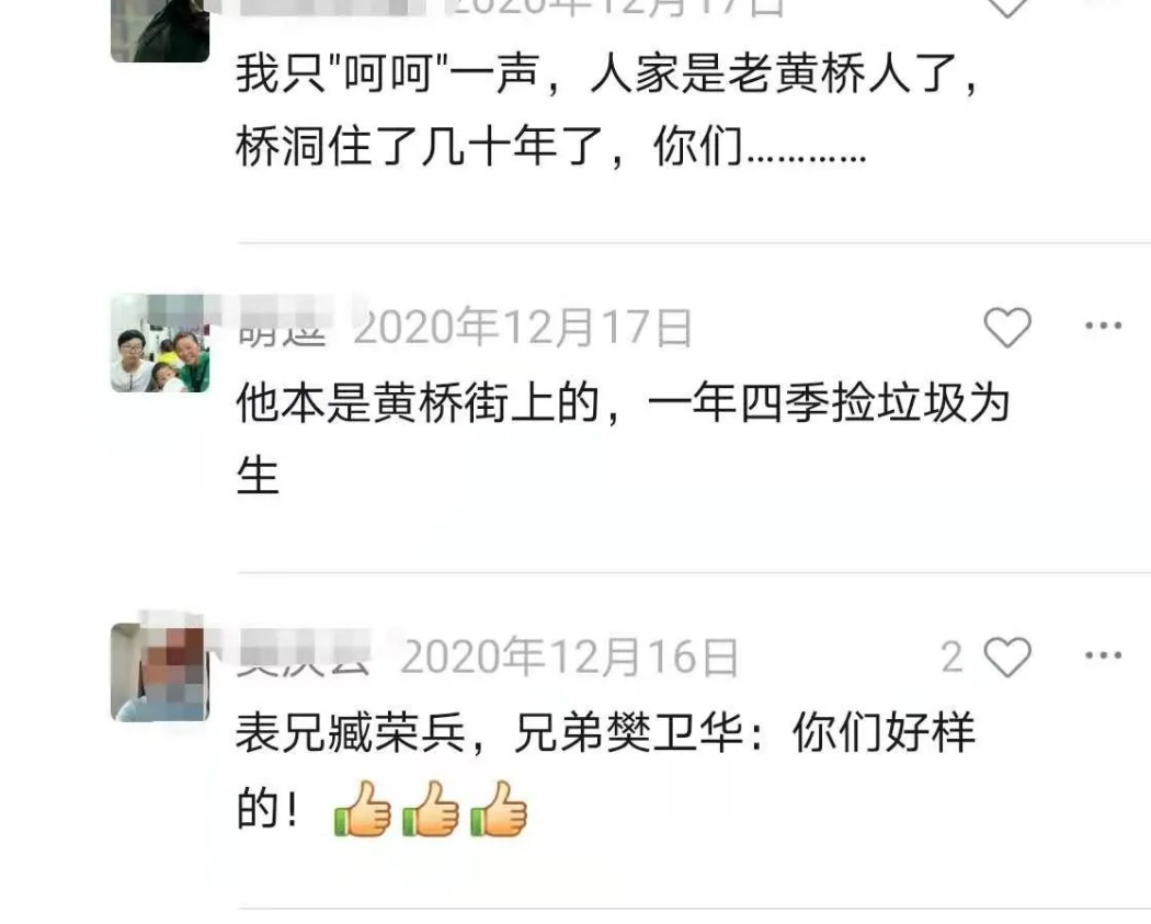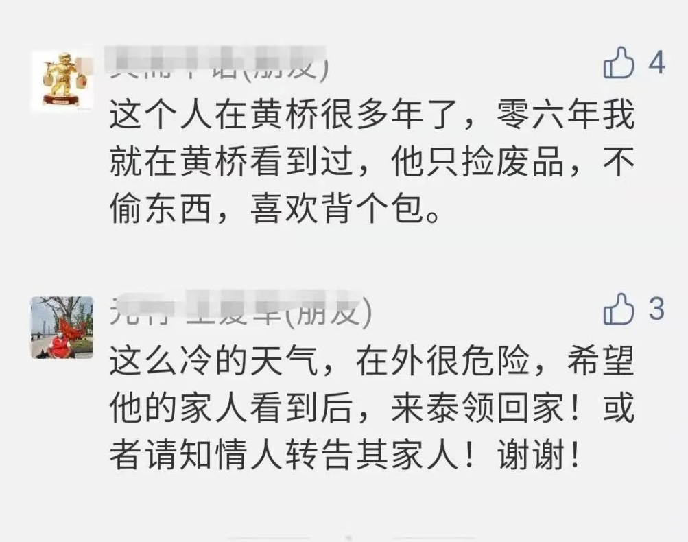為此,12月16日,老樂在線發(fā)布了“老樂在線尋親513號”尋親信息:《“橋洞老人”家在何方?》。同時,老樂在線還在抖音、視頻號上同步發(fā)布了尋人信息。 很多網(wǎng)友看后留言:這個人在黃橋很多年了,甚至有的人認為他就是黃橋本地人。 可能網(wǎng)友從小就看到“橋洞老人”的存在,所以以為他就是黃橋本地人。