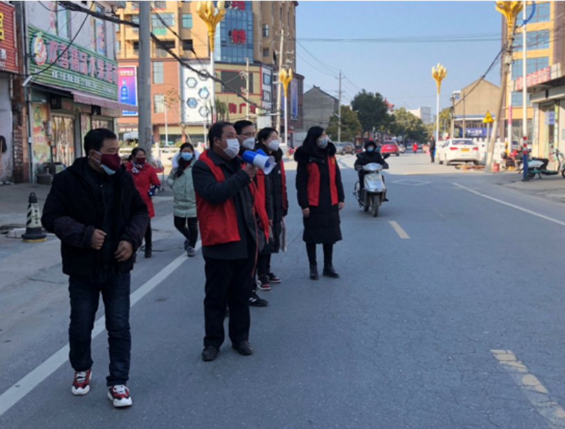 宣傳全覆蓋,營造濃厚氛圍。在集鎮(zhèn)主干道、農(nóng)貿(mào)市場、各村主要出入口,懸掛橫幅68條,張貼宣傳標(biāo)語、海報(bào)100張,鎮(zhèn)區(qū)所有LED 顯示屏滾動(dòng)播放防控標(biāo)語。組織志愿者在鎮(zhèn)區(qū)超市(商場、商店)、農(nóng)貿(mào)市場、浴室、宗教活動(dòng)點(diǎn)等公共場所發(fā)放防控宣傳單10000份。各村廣播定時(shí)播放《十項(xiàng)注意》,微信工作群及時(shí)推送預(yù)防知識。從1月13日起,該鎮(zhèn)對農(nóng)貿(mào)市場采取封門措施,只留一個(gè)進(jìn)出口,要求所有經(jīng)營者一律帶頭佩戴口罩,提高自我防護(hù)意識,并在進(jìn)出口醒目處,張貼佩戴口罩的友情提示,教育引導(dǎo)所有進(jìn)入人員均須佩戴口罩方可入場,進(jìn)一步營造了濃烈的防控氛圍。