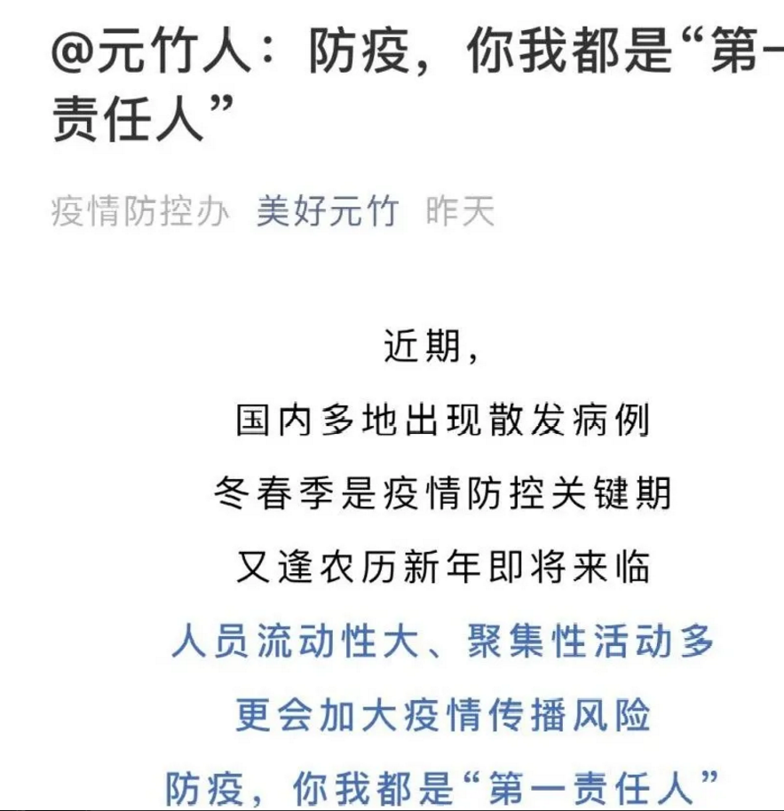 元竹鎮(zhèn) 提高思想認識,做到守土有責。1月11日元竹鎮(zhèn)召開疫情防控工作會議,迅速傳達市疫情防控工作會議精神,并對下一階段疫情防控工作進行研究部署。各村居、各單位迅速進入備戰(zhàn)狀態(tài),全力為疫情防控“保駕護航”。 加強防控宣傳,做到人人知曉。線上,通過微信公眾號宣傳疫情防控知識;線下,發(fā)放一封信、張貼疫情防控通知及《倡議書》、顯示屏滾動播放防控標語、綜治執(zhí)勤車喇叭宣傳等形式加大宣傳力度。