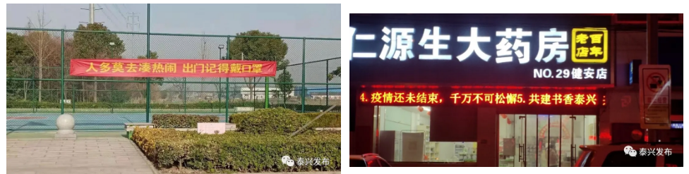 年關歲末,正是人員聚集、流動的高峰期,疫情防控面臨新的考驗。泰興市各鄉(xiāng)鎮(zhèn)街道全力壓緊壓實聯(lián)防聯(lián)控工作責任,構筑起一道堅強可靠的“疫情防控墻”。 河失鎮(zhèn) 落實防控責任,做實疫情防疫措施。懸掛宣傳橫幅,印發(fā)疫情防控倡議書,每日播放宣傳廣播,制定下發(fā)河失鎮(zhèn)疫情防控工作指南。同時,不間斷開展重點人員排查和每日數(shù)據(jù)報送,河失鎮(zhèn)研究制定了“三色預警”機制,將低中高風險地區(qū)返泰人員按照藍黃紅進行三色分類,分級分類落實管控措施。