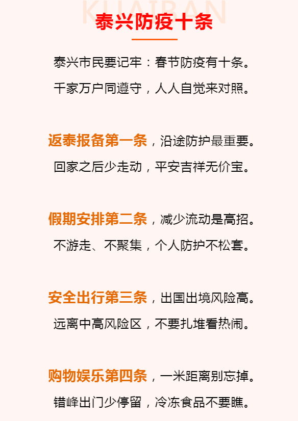 泰興市融媒體中心、市文體廣旅局精心編排制作了快板《泰興防疫十條》,助市民快速了解。