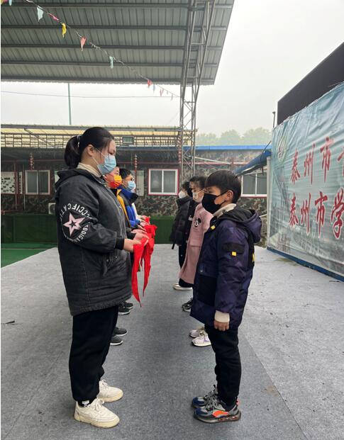 為進(jìn)一步加強(qiáng)愛(ài)國(guó)主義教育,豐富青少年的業(yè)余生活,1月8日,黃橋鎮(zhèn)組織青少年學(xué)生走進(jìn)祁巷青少年綜合實(shí)踐基地。廣場(chǎng)上,參與活動(dòng)的高年級(jí)少先隊(duì)員為新隊(duì)員佩戴上鮮艷的紅領(lǐng)巾。鮮艷的紅領(lǐng)巾映紅了孩子們的臉龐,新隊(duì)員臉上洋溢著自豪的笑容。