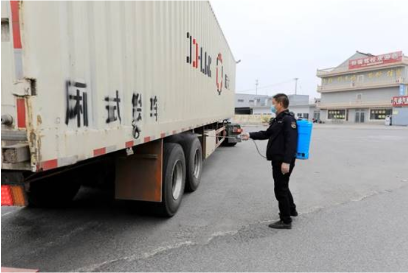 3月27日,位于江蘇省泰興市境內(nèi)廣陵高速附近的裝駁點(diǎn),一輛貼著封條的蘇B牌照貨運(yùn)車輛緩緩駛?cè)。按照疫情防控要求,所有進(jìn)入泰興的貨運(yùn)車輛統(tǒng)一經(jīng)泰興東互通下高速,經(jīng)查驗(yàn)通過后張貼抵泰封條,由接引人員全程無接觸將車輛引導(dǎo)至裝駁點(diǎn)。
