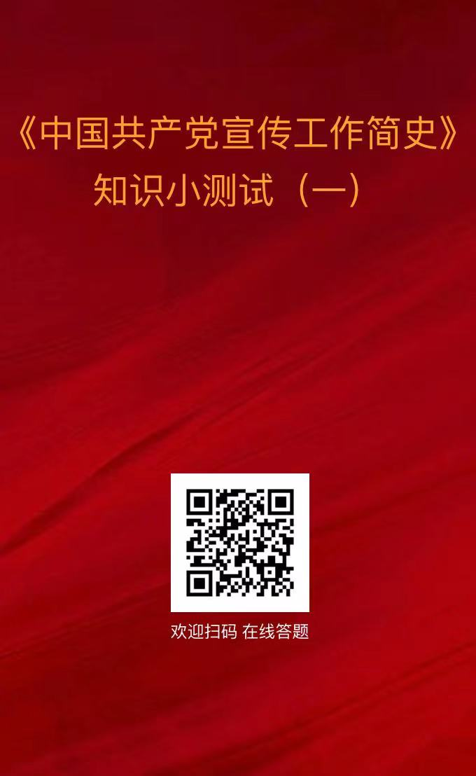 為深入學(xué)習(xí)《中國共產(chǎn)黨宣傳工作簡史》,推動黨員群眾全面了解黨的宣傳史上重要思想、重要方針、重要事件、重要活動,進(jìn)一步深刻認(rèn)識“兩個確立”的決定性意義,增強(qiáng)“四個意識”、堅定“四個自信”、做到“兩個維護(hù)”,特開設(shè)“《中國共產(chǎn)黨宣傳工作簡史》知識小測試”欄目,歡迎廣大讀者積極掃碼參與答題。