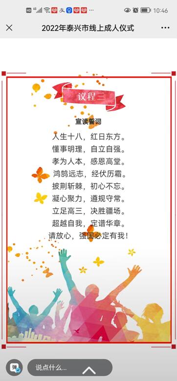 (手機(jī)掃碼參與“2022年泰興市線上成人禮”) |