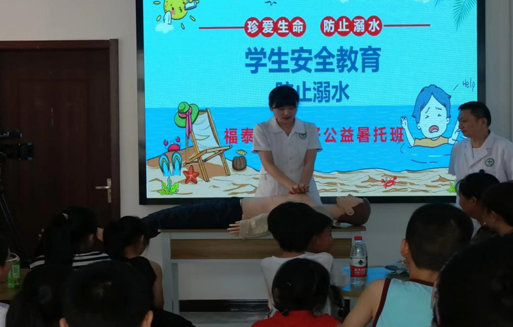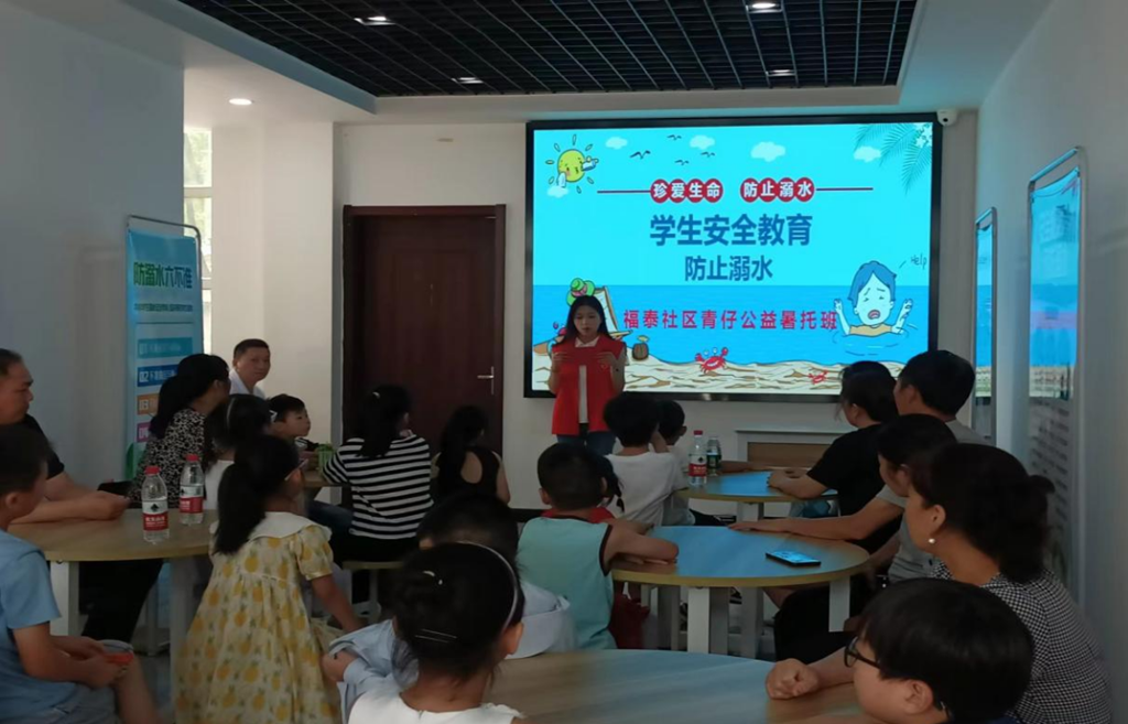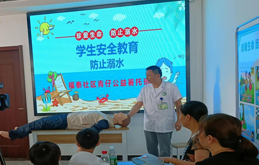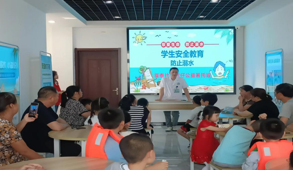 每逢暑假,最令家長和老師關(guān)切的就是防溺水。濱江鎮(zhèn)周邊河流較多,兒童夏季溺水隱患較大,在濱江鎮(zhèn)團委的精心組織下,一場防溺水安全課實景教學正在福泰社區(qū)暑托班里上演。