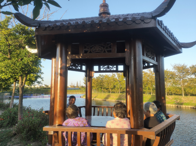 走進(jìn)泰興市水美鄉(xiāng)村——朱徐村,黃橋鎮(zhèn)副鎮(zhèn)長劉世國介紹,該村河道通過水治理,實現(xiàn)了河暢水清、岸綠景美,水生態(tài)持續(xù)向好。朱徐村把黨史學(xué)習(xí)教育同觀照現(xiàn)實、推動工作結(jié)合起來,通過開展“我為群眾辦實事”實踐活動,持續(xù)鞏固提升河道整治成果。遠(yuǎn)處小龍河支溝岸邊涼亭內(nèi),四五個村民納涼娛樂,好一副水凈岸綠景美人和的景象。這就是朱徐村河長制工作的一個縮影。走進(jìn)泰興市水美鄉(xiāng)村——朱徐村,黃橋鎮(zhèn)副鎮(zhèn)長劉世國介紹,該村河道通過水治理,實現(xiàn)了河暢水清、岸綠景美,水生態(tài)持續(xù)向好。朱徐村把黨史學(xué)習(xí)教育同觀照現(xiàn)實、推動工作結(jié)合起來,通過開展“我為群眾辦實事”實踐活動,持續(xù)鞏固提升河道整治成果。遠(yuǎn)處小龍河支溝岸邊涼亭內(nèi),四五個村民納涼娛樂,好一副水凈岸綠景美人和的景象。這就是朱徐村河長制工作的一個縮影。
