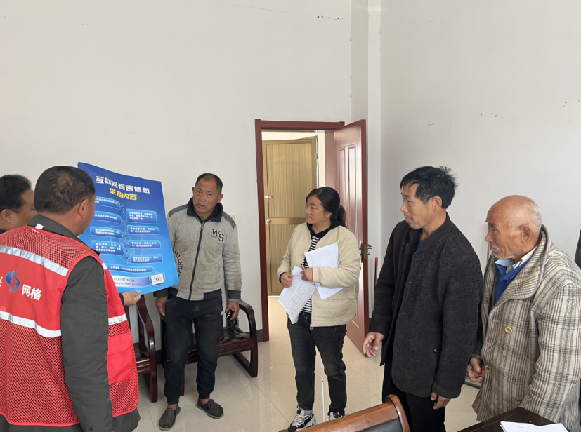 活動(dòng)現(xiàn)場(chǎng),借助村居廣場(chǎng)宣傳欄,志愿者向村民講解互聯(lián)網(wǎng)違法和不良信息的危害,介紹網(wǎng)絡(luò)舉報(bào)受理范圍、受理方式和舉報(bào)流程等知識(shí),引導(dǎo)群眾共同營(yíng)造清朗網(wǎng)絡(luò)空間。