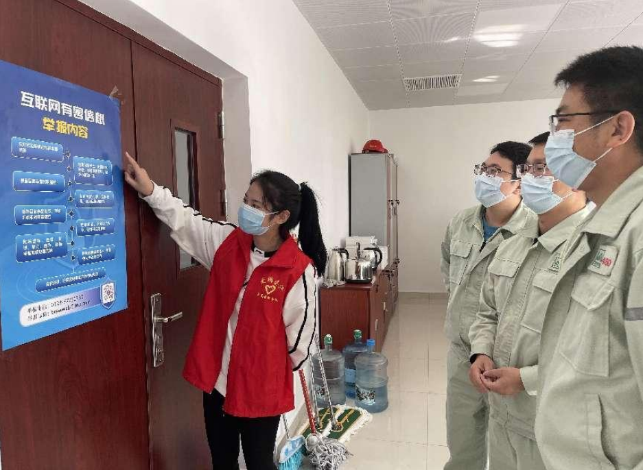 志愿者們走進(jìn)泰州百力化學(xué)股份有限公司進(jìn)行宣傳,為了方便更多的員工了解網(wǎng)絡(luò)舉報(bào)工作,志愿者們向企業(yè)員工們講解互聯(lián)網(wǎng)違法和不良信息的危害,介紹了網(wǎng)絡(luò)舉報(bào)受理范圍、受理方式和舉報(bào)流程等知識(shí),引導(dǎo)企業(yè)共同營(yíng)造清朗的網(wǎng)絡(luò)空間。