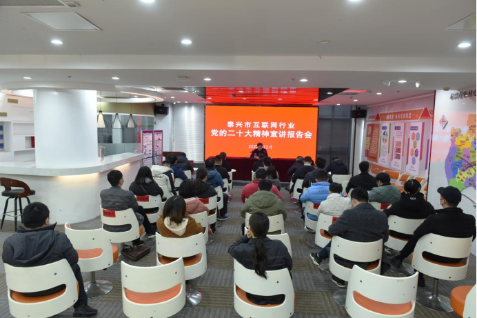 為進(jìn)一步加強(qiáng)互聯(lián)網(wǎng)行業(yè)黨建工作,切實(shí)增強(qiáng)基層黨組織的政治功能和組織功能,推動(dòng)黨的二十大精神在互聯(lián)網(wǎng)領(lǐng)域落地生根,12月9日下午,泰興市委網(wǎng)信辦舉辦市互聯(lián)網(wǎng)行業(yè)黨的二十大精神宣講報(bào)告會(huì),推動(dòng)習(xí)近平新時(shí)代中國(guó)特色社會(huì)主義思想進(jìn)企業(yè)、進(jìn)網(wǎng)絡(luò)。
