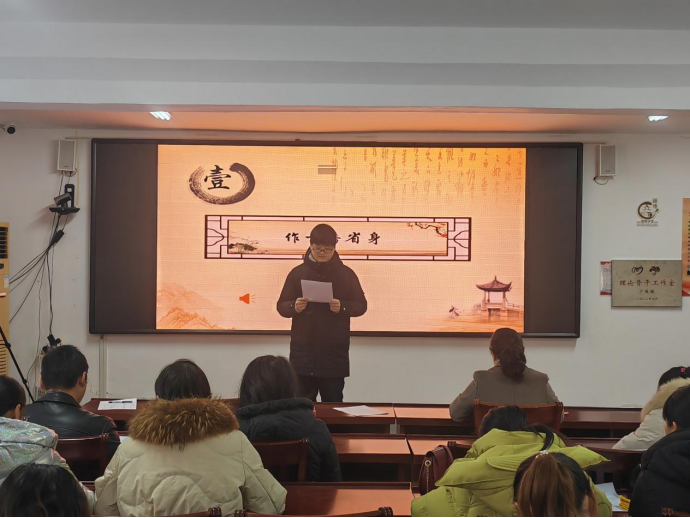 三省己之過,經(jīng)典激斗志。“作為一名黨員干部,是否時(shí)時(shí)處處真誠處世、以誠待人?是否時(shí)時(shí)處處熱情服務(wù)、愛崗敬業(yè)?是否遵紀(jì)守法、坦蕩無私?”隨著主持人劉建成的提問,參會(huì)人員認(rèn)真反躬自省。一曲《感恩的心》、一首《無題》,感染和激勵(lì)參會(huì)者立足崗位甘于奉獻(xiàn),做一個(gè)愛國奮斗的有志青年。