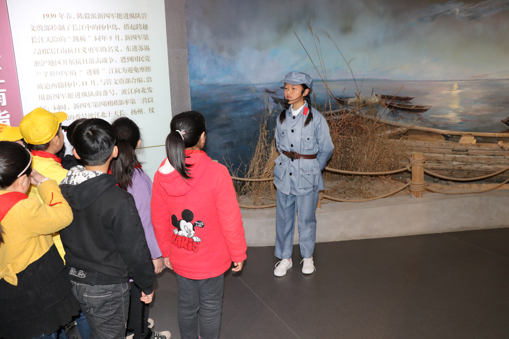 為弘揚(yáng)“奉獻(xiàn)、友愛、互助、進(jìn)步”的志愿服務(wù)精神,新四軍黃橋戰(zhàn)役紀(jì)念館和黃橋小學(xué)聯(lián)合舉辦“紅領(lǐng)巾講解員”志愿服務(wù)活動(dòng)。通過(guò)前期參觀交流、崗前培訓(xùn)等環(huán)節(jié),2023年3月4日下午,新四軍黃橋戰(zhàn)役紀(jì)念館紅領(lǐng)巾學(xué)雷鋒志愿服務(wù)隊(duì)開展公益講解,用小聲音傳播大能量,為游客生動(dòng)講述黃橋戰(zhàn)役故事。