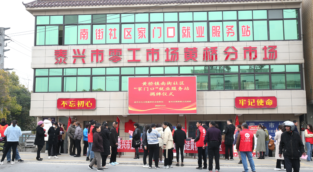 全市首家“家門口”就業(yè)服務(wù)站在黃橋革命老區(qū)揭牌 3月30日上午,泰興市首家“家門口”就業(yè)服務(wù)站在黃橋鎮(zhèn)南街社區(qū)舉行揭牌儀式,這一天共有4家企業(yè)進站招聘,提供了38個工種400多個崗位,吸引了周邊群眾300余人前來求職選崗,黃橋鎮(zhèn)并有勞動保障協(xié)理員充當(dāng)就業(yè)政策的“宣傳員”、就業(yè)崗位的“信息員”、就業(yè)援助的“服務(wù)員”,在現(xiàn)場提供了就業(yè)指導(dǎo)、勞動關(guān)系和政策咨詢等服務(wù)。據(jù)泰興市人社局副局長孫建民介紹:“今年泰興市將切實打通就業(yè)服務(wù)‘最后一公里’,預(yù)計打造‘家門口’就業(yè)服務(wù)站6家,兜底幫扶不少于300名低收入人口、殘疾人、特困職工家庭成員、零就業(yè)家庭成員、登記失業(yè)1年以上的長期失業(yè)人員等五類困難人員就業(yè),實現(xiàn)收入有增長、上崗有補貼、權(quán)益有保障”。