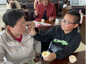接下來是給媽媽獻(xiàn)花環(huán)節(jié),孩子們向媽媽送上母親節(jié)祝福并說出自己的心里話,媽媽們都非常感動(dòng)。同時(shí)我們社工站也為孩子和家長準(zhǔn)備了節(jié)日蛋糕一起享用,孩子們不約而同將第一口蛋糕都喂給了媽媽,每個(gè)人的臉上都洋溢著溫馨、幸福的微笑。活動(dòng)結(jié)束后,家長們紛紛表示:“活動(dòng)促進(jìn)了親子之間的互動(dòng),拉近了親子距離,非常有意義。”