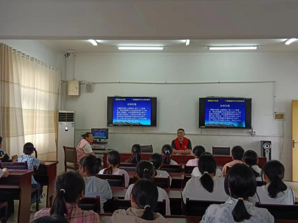 紅色話劇追尋先賢足跡。“星光不問(wèn)趕路人,歷史屬于奮斗者!你們對(duì)曾爺爺?shù)氖论E了解多少呢?”一場(chǎng)生動(dòng)的《一封泛黃的感謝信——感恩曾濤爺爺》紅色話劇讓孩子們沉浸其中。廣陵鎮(zhèn)組織留守兒童集中觀看紅色話劇,跟隨歷史的步伐,回憶風(fēng)雨飄搖的年代中著名外交活動(dòng)家曾濤獻(xiàn)身革命和中國(guó)外交事業(yè)、變賣(mài)家中珍藏的書(shū)畫(huà)回報(bào)家鄉(xiāng)教育的事跡,孩子們?cè)谟^劇中傳承弘揚(yáng)紅色文化和愛(ài)國(guó)精神,鼓勵(lì)他們無(wú)論人生遇到什么困難,都要不畏困難,以夢(mèng)想為帆,勇毅前行。 法伴成長(zhǎng)護(hù)航七彩青春。結(jié)合6月未成年人保護(hù)月,為更好地保護(hù)未成年人的身心健康,廣陵鎮(zhèn)司法所在寧界中學(xué)開(kāi)展“點(diǎn)餐式”精準(zhǔn)化普法活動(dòng),幫助青春期的孩子們扣好人生的“法治紐扣”,讓“法護(hù)未來(lái)”落深落實(shí)。“我們?cè)诜e極推動(dòng)法治情景劇、微電影、法治歌曲進(jìn)校園,讓學(xué)生在‘沉浸式’的體驗(yàn)中接受法治教育,感受法治魅力,推動(dòng)法治宣傳深入人心。”廣陵鎮(zhèn)司法所工作人員宋曉奇說(shuō)道。