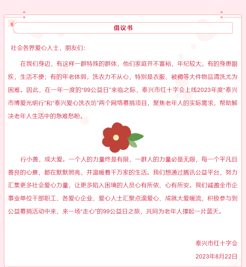 【99公益】泰興市紅十字會(huì)邀您“一塊”做好事