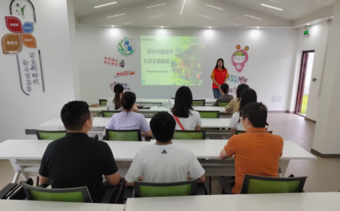 本次活動的宗旨是:有方向的干部培養(yǎng)、有溫度的思想引領(lǐng)、有內(nèi)涵的理論建設(shè)、有作為的科技人才;顒庸灿10個流程。首先是一番省身,其次是《論道說德》演講、誦經(jīng)典、聽勵志故事對白、觀“三農(nóng)人——趙亞夫”事跡短片;8名年輕同志談各自成長歷程、奮斗故事;有獎競答和大合唱《歌唱祖國》;最后是年輕同志暢談本次道德講堂活動的感悟感想。年輕的“畜牧人”們紛紛表示,要進(jìn)一步加強學(xué)習(xí),發(fā)揚新時期黃橋決戰(zhàn)精神,不斷加強黨性鍛煉,奮進(jìn)新征程、建功新時代,努力成為全面推進(jìn)鄉(xiāng)村振興征程中的服務(wù)者、接力者、繼承者。 河失鎮(zhèn)開展“踐行村規(guī)民約 弘揚文明新風(fēng)”活動 2023年9月20日是全國第21個“公民道德宣傳日”,為深入推進(jìn)移風(fēng)易俗,進(jìn)一步宣傳村規(guī)民約相關(guān)內(nèi)容,營造文明、和諧的村風(fēng),河失鎮(zhèn)在現(xiàn)代農(nóng)業(yè)產(chǎn)業(yè)園開展“踐行村規(guī)民約 弘揚文明新風(fēng)”活動;顒又,志愿者用通俗易懂的語言向各村網(wǎng)格員、中心戶長宣講村規(guī)民約的具體內(nèi)容,并帶領(lǐng)他們走進(jìn)商戶、走進(jìn)村居發(fā)放村規(guī)民約宣傳單和倡議書,引導(dǎo)村民破除陳規(guī)陋習(xí),樹立文明、健康的生活理念。