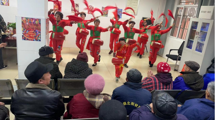 為深入學(xué)習(xí)貫徹習(xí)近平文化思想,傳承弘揚(yáng)中華優(yōu)秀傳統(tǒng)文化,豐富人民群眾文化生活,激勵廣大群眾振奮精神、共創(chuàng)新生活。在新春佳節(jié)來臨之際,泰興市黃橋鎮(zhèn)新文明實(shí)踐所走進(jìn)敬老院開展“賞年畫 過大年”慶新春文明實(shí)踐主題活動,讓老人們在年畫中品味年味,用視覺感受多種藝術(shù)創(chuàng)作形式和新年元素碰撞在一起的美麗年畫作品。 年畫點(diǎn)綴“龍年新春” 走進(jìn)黃橋鎮(zhèn)敬老院,便可以看到一幅幅喜氣洋洋的年畫裝點(diǎn)在敬老院的四周,為即將到來的龍年新春送上美好祝福。這一幅“侗族百家宴慶龍年”以侗族的傳統(tǒng)習(xí)俗表達(dá)出新年的歡樂,年畫上,侗族人民同吃百家宴、互敬連心酒,“曬”出了侗家群眾的幸福生活。那一幅“慶龍年”則將放鞭炮、寫春聯(lián)、吃年夜飯、舞龍燈等畫面拼接組合,色彩明快、線條流暢、內(nèi)容多樣,再現(xiàn)了民眾歡慶春節(jié)的盛大場景。“龍騰盛世”、“歡樂集市”、“竹馬起舞頌盛世”......這里張貼的每一幅年畫作品都用其喜氣洋洋的名字、紅紅火火的色調(diào)向敬老院的老人們表達(dá)著新春的美好祝福。 賞畫共感過年喜悅 活動中,老人們用心欣賞著院內(nèi)的每一幅年畫,互相討論著年畫的蘊(yùn)意,興趣愈發(fā)的濃烈。看著老人們對年畫的喜愛與好奇,志愿者們主動向老人們講述起年畫的名稱、種類、表現(xiàn)內(nèi)容,偶爾還會夾雜一些年畫的制作工藝、表現(xiàn)形式等小知識,老人們聽的津津有味,時有疑問志愿者們也一一作答。這些年畫讓老人們在欣賞作品的同時,既能感受到向上向善的價值力量,又烘托出熱熱鬧鬧賞年畫、紅紅火火過大年的濃厚氛圍,使得整個敬老院都變得熱鬧非凡。 歡樂表演增添喜氣 為滿足老年人文化娛樂需求,此次活動還特地帶來了喜氣洋洋的腰鼓表演。“咚咚咚”,節(jié)奏明快的鼓點(diǎn)縈繞在敬老院四周,回蕩在院落上空,多名表演人員,或老人,或小孩,穿著鮮艷的彩衣,敲起歡快的腰鼓,舞動幸福的紅綢,迎接著龍年新春的到來。全院的老人歡聚一堂,觀看著精彩的腰鼓表演,享受著幸福美滿的開心生活。在一旁觀看腰鼓表演的老人高興地說:“腰鼓表演不僅給我們帶來了歡樂,還讓我們感受到了濃濃的年味,希望這樣的活動多搞!” 快樂辭舊歲,歡喜迎新年。下一步,泰興市黃橋鎮(zhèn)將繼續(xù)以年畫藝術(shù)激活節(jié)日文化內(nèi)涵,豐富群眾節(jié)日文化生活,通過開展豐富多彩的文化活動,讓更多人領(lǐng)略傳統(tǒng)節(jié)日的獨(dú)特魅力。 |