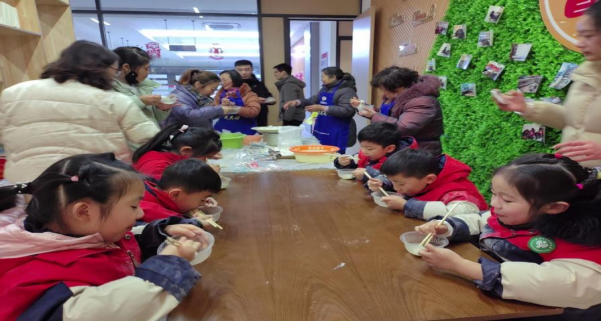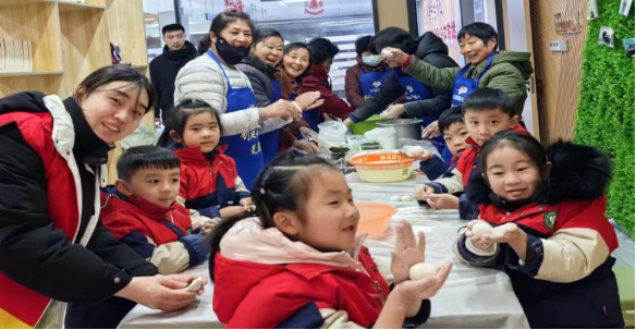 活動(dòng)開始就分外的熱鬧。社區(qū)居民、社區(qū)志愿者、社工齊聚一堂,包湯圓、煮湯圓、話湯圓。大家齊心協(xié)力,分工有序,和面、拌餡、一搓、一捏、一按、一團(tuán),不一會(huì)兒一坨坨白白的糯米面在大家的巧手中團(tuán)成一個(gè)球,包上芝麻餡,做成一個(gè)個(gè)誘人的湯圓。小朋友也有樣學(xué)樣的包了起來,奇形怪狀的湯圓讓人忍俊不禁。下鍋,沸水一煮,又香又甜的湯圓便新鮮出爐。雖然外面天氣寒冷,但大家吃著熱氣騰騰的湯圓,暖在心里,甜在臉上。