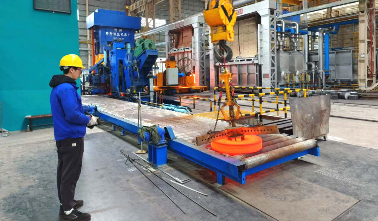 在江蘇神意科技制造有限公司一期工程5號車間內,三臺碾環(huán)機正在轟鳴作業(yè)中高效運轉。經過鍛造加熱爐的烈焰炙烤、油壓機上鋼坯鍛壓成型、碾環(huán)機上擴孔加工以及數(shù)控立車的精加工等多道工序后,一件件風電法蘭在“千錘百煉”中得以完美呈現(xiàn)。該公司副總經理王忠俊自豪地表示:“自去年12月份正式投產以來,我們的訂單形勢一直非常喜人。目前手上還有近1億元的歐洲訂單等待交付。”他透露,公司計劃今年全年開票銷售額達到3.5億元,并有望在一二月份已完成開票6000萬元的基礎上實現(xiàn)穩(wěn)步增長。 |
