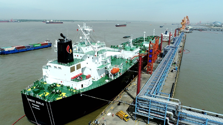 5月5日,在泰興市金燕倉儲液體化工碼頭,一艘5萬噸級的LPG船和一艘1萬噸級液體化工船兩艘外輪先后靠泊港區(qū),開始執(zhí)行接卸任務(wù)……