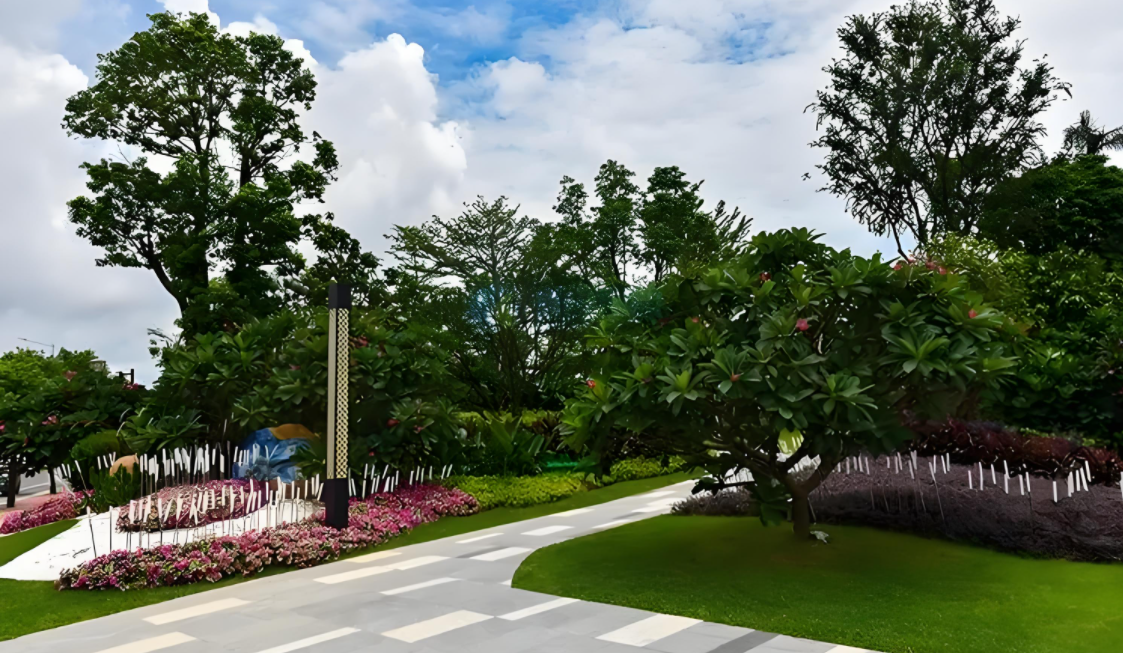 日前,在機(jī)電安裝公司南側(cè)、商井路北側(cè)節(jié)點(diǎn)綠化項(xiàng)目現(xiàn)場,綠化栽植、園路透水混凝土澆筑、籃球場基礎(chǔ)施工以及景觀燈、垃圾桶安裝已經(jīng)完成。