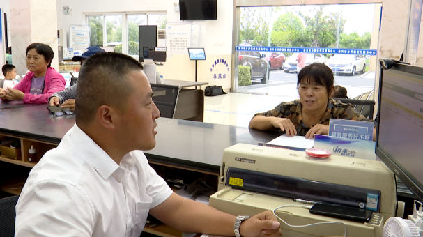 在分界鎮(zhèn)便民服務(wù)大廳里,分界鎮(zhèn)居民張小平前來領(lǐng)取新辦理的企業(yè)營業(yè)執(zhí)照。過去,辦理營業(yè)執(zhí)照業(yè)務(wù)需要到泰興城區(qū),現(xiàn)在只需要在家門口就能夠辦理,效率提高了很多。