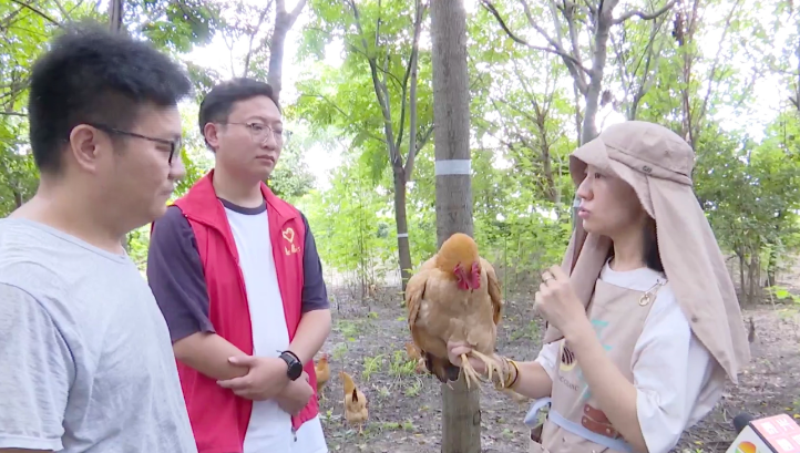 在新街鎮(zhèn)家庭農(nóng)場,陳麗君正在用青飼料飼養(yǎng)土雞。她是一名90后,熱愛航拍和攝影。兩年前,她在航拍時發(fā)現(xiàn)了這片林地,于是決定因地制宜,發(fā)展林下養(yǎng)雞產(chǎn)業(yè)。“2023年,農(nóng)場銷售了5萬多只土雞苗和3萬多只成雞,以及10多萬枚雞蛋,年收入超過100萬元。同時,通過土地流轉(zhuǎn)、托養(yǎng)寄養(yǎng)、訂單銷售和提供就業(yè)等方式,帶動了周邊居民的增收。”陳麗君介紹,農(nóng)場堅持全生態(tài)養(yǎng)殖的理念,種梨和養(yǎng)雞相結(jié)合,實現(xiàn)了循環(huán)發(fā)展。“ππ農(nóng)場是一個載體,下面有四條產(chǎn)業(yè)線。8月份通過直播銷售了大約20萬元的產(chǎn)品。”陳麗君說,農(nóng)場的發(fā)展得到了多方的支持,這使得他們能夠取得現(xiàn)在的成績。目前,農(nóng)場的產(chǎn)品在三大網(wǎng)絡(luò)電商平臺都有銷售。