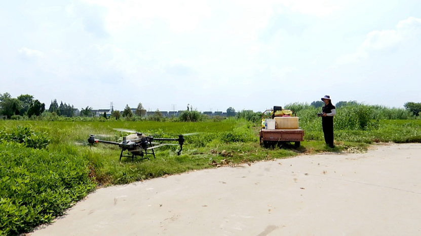 日前,在泰興市珊瑚鎮(zhèn)左莊村雙子家庭農場,無人機飛手王立明正依照“服務訂單”,為農場承包的300畝水稻進行飛防作業(yè)。“今年,我已為2000多畝水稻提供了飛防服務。無人機飛防幾乎覆蓋了防病治蟲施肥,效率很高,省時省工。”王立明介紹。