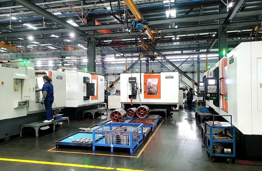 排布設(shè)備升級(jí)“一盤大棋” 在“兩新”熱潮涌動(dòng)之下,作為工業(yè)強(qiáng)市的泰興,企業(yè)成為設(shè)備更新的核心力量。該市全面梳理工業(yè)領(lǐng)域的設(shè)備更新和技術(shù)改造項(xiàng)目,并逐步有序推進(jìn)。截至目前,已有197個(gè)項(xiàng)目被納入工業(yè)設(shè)備更新改造項(xiàng)目?jī)?chǔ)備庫(kù),計(jì)劃總投資達(dá)612.5億元,實(shí)際已完成設(shè)備更新2438臺(tái)(套)。 眾多設(shè)備制造企業(yè)果斷淘汰舊產(chǎn)能,加速產(chǎn)業(yè)迭代步伐。踏入江蘇泰隆減速機(jī)股份有限公司,一片繁忙景象映入眼簾——紅色機(jī)器人手臂敏捷旋轉(zhuǎn),精準(zhǔn)定位后自動(dòng)送往機(jī)床深加工,從進(jìn)料、精工到磨齒再到總裝,一氣呵成……曾經(jīng)給人勞動(dòng)密集型印象的企業(yè)已悄然煥新。這得益于今年新改造的鏜床、滾齒機(jī)等47臺(tái)傳統(tǒng)設(shè)備,并且加裝了1套智能化柔性生產(chǎn)線,實(shí)現(xiàn)24小時(shí)無人模式自動(dòng)加工,在有效提高生產(chǎn)效率的同時(shí),促使產(chǎn)品質(zhì)量更加穩(wěn)定。