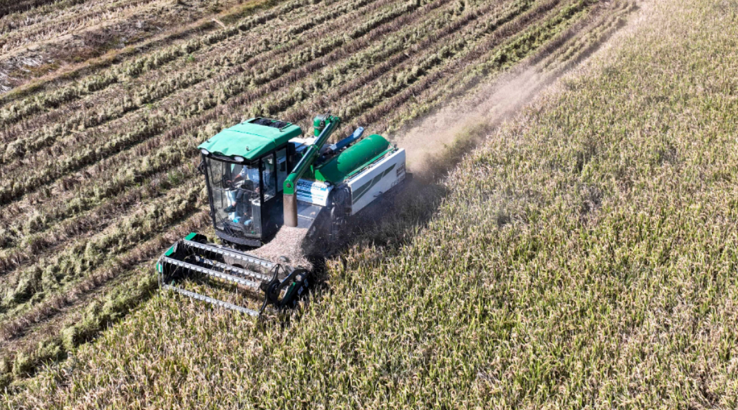 泰興市秋糧種植以水稻為主,間或有小雜糧、大豆、玉米等農(nóng)作物,因?yàn)榉N類繁多,生長時(shí)序不同,農(nóng)作物的收獲時(shí)機(jī)也不一樣。秋糧收獲,分秒必爭。因此要搶農(nóng)時(shí)、抓緊度,根據(jù)農(nóng)作物生長實(shí)際情況,科學(xué)研判,及時(shí)收拾歸倉,保障秋糧收獲進(jìn)度,讓在這片土地上辛苦耕耘的每一份努力都不被辜負(fù)。 從春耕播下希望的種子,到夏耘灑下辛勞的汗水,秋收時(shí)節(jié),我們迎來風(fēng)吹稻浪好“豐”景,這喜悅的背后離不開農(nóng)業(yè)機(jī)械化、智能化帶來的便利,科技的“金戈鐵馬”為糧食豐收插上了理想的翅膀。豐收時(shí)節(jié),我們更要利用好科技手段,主動(dòng)謀劃對(duì)接,加大機(jī)械化普及水平和作業(yè)規(guī)模進(jìn)度,統(tǒng)籌調(diào)度好機(jī)械社會(huì)化服務(wù),對(duì)可能出現(xiàn)的機(jī)械服務(wù)資源緊張問題,制定好預(yù)定方案,妥善安排農(nóng)機(jī)調(diào)度,制定科學(xué)的作業(yè)時(shí)間和收割進(jìn)度任務(wù)。同時(shí),牢固樹立“減損就是增收”理念,作業(yè)前做好收割機(jī)具調(diào)試、收割路線規(guī)劃,最大限度減少水稻機(jī)收損失,確保顆粒歸倉。