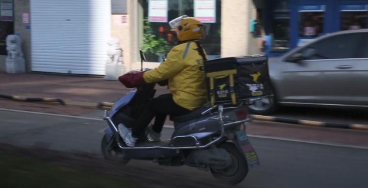 1月5日上午十點左右,午間用餐高峰將至,夏海兵熟練地檢查著電動車的電量、輪胎和剎車,確保一切準備就緒。圍巾、皮手套、加厚護膝、一輛電動車、兩個外賣箱,這些是他養(yǎng)活一家四口的全套裝備。今年是他送外賣的第三年,從早上九點上線到晚上十點半收工,每天的在線時長基本在十一至十二小時,多年的經驗讓他掌握了一套自己的節(jié)奏和方法,如合理規(guī)劃路線、利用碎片時間休息、錯峰吃飯等,因為爆單的時候,一忙就停不下來。