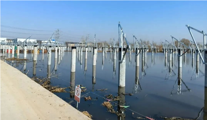 近日,隨著泰興市曲霞16MW魚塘水面光伏發(fā)電項(xiàng)目施工的進(jìn)行,項(xiàng)目初見雛形。未來,這里會(huì)形成水域上空安裝光伏板進(jìn)行發(fā)電,水下進(jìn)行漁業(yè)養(yǎng)殖,實(shí)現(xiàn)資源立體化利用。