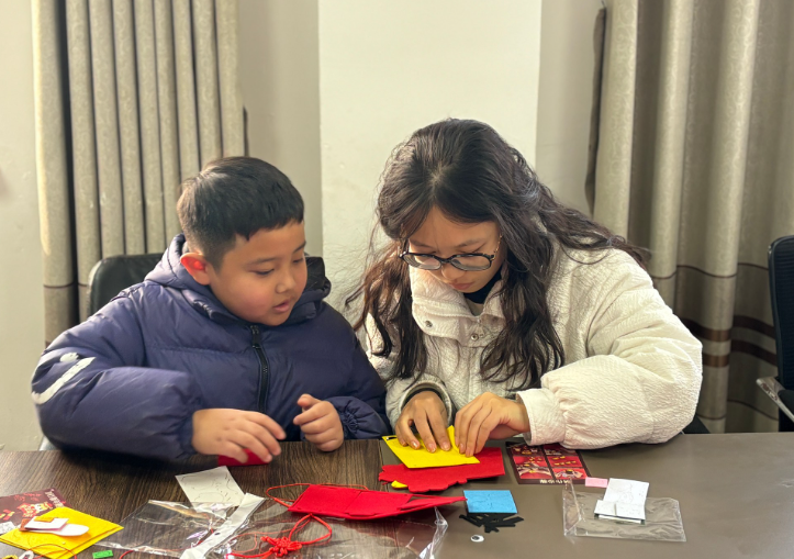 巧手繪“新”,點(diǎn)亮童心。“大家發(fā)揮想象,把你心中的春節(jié)畫出來好不好!”1月18日,在焦蕩社區(qū),志愿者焦振亞的這句話瞬間點(diǎn)燃了孩子們的熱情與靈感。他們拿起手中的畫筆,用色彩斑斕的畫表達(dá)自己對(duì)傳統(tǒng)佳節(jié)的理解和向往。與此同時(shí),在張橋鎮(zhèn)匡莊村未成年人活動(dòng)室內(nèi),志愿者正帶領(lǐng)小朋友們制作新年鞭炮掛飾。小朋友在志愿者的幫助下,一串串漂亮喜慶的鞭炮掛飾紛紛制作完成。孩子們高舉自己的作品,臉上洋溢著自豪的笑容,整個(gè)活動(dòng)室都充滿了歡聲笑語。