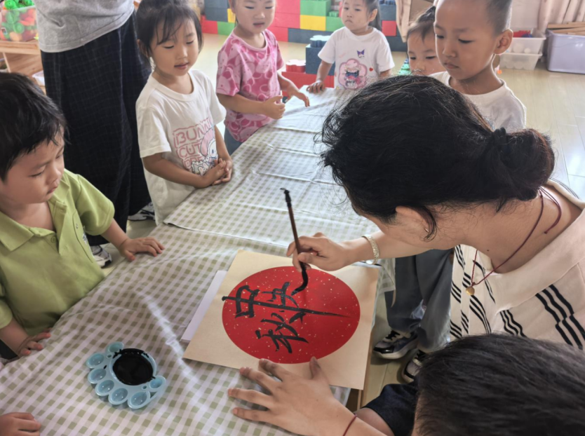 執(zhí)筆寫(xiě)意傳文化,稚子歡顏迎佳節(jié)。在紅石榴家園——廣陵中心幼兒園里,一場(chǎng)融合傳統(tǒng)文化的特別活動(dòng)熱鬧開(kāi)場(chǎng),小朋友歡聚一堂,現(xiàn)場(chǎng)滿是歡聲笑語(yǔ)。“筆墨傳情迎中秋”環(huán)節(jié)精彩紛呈。卞一鳴老師手持毛筆,在紙上瀟灑揮毫,筆走龍蛇間,“中秋快樂(lè)”“闔家團(tuán)圓”“花好月圓”等祝福語(yǔ)躍然紙上,剛勁有力的字跡引得孩子們陣陣驚嘆。小朋友們圍在桌旁,眼睛緊緊盯著老師的筆尖,好奇地觀察運(yùn)筆技巧,有的還伸出小手,模仿起書(shū)寫(xiě)姿勢(shì),模樣十分可愛(ài)。隨后,老師將寫(xiě)滿祝福的卡片贈(zèng)予小朋友,還耐心地講解起中秋習(xí)俗,讓孩子們?cè)跉g樂(lè)中感受傳統(tǒng)文化的魅力。