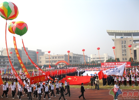 運動員入場的情景 (記者 葉余華 蔡艷 王濤)紅旗飄飄、彩球高懸、鼓聲隆隆,一派喜慶的節(jié)日氣氛。10月13日上午,1萬多位市民從四面八方趕來,不約而同地聚集在市三高田徑場,為期許已久的市第五屆運動會加油助威。“我宣布,泰興市第五屆運動會開幕!”在市委書記、市人大常委會主任張兆江熱情洋溢的宣布聲中,市第五屆運動會拉開了帷幕。 時隔4年,市運會再度巍巍走來。鮮花簇擁、禮花絢爛,在震天的鑼鼓聲和高昂的運動員進行曲中,60支代表隊邁著整齊的步伐,懷著高漲的激情,將“更快、更高、更強”的體育精神闡述得淋漓盡致。江蘇省體育局副局長高林,江蘇省體育局群體處處長劉立,泰州市體育局局長劉秋平,我市市委副書記、市長高亞梓,市委副書記、市政協(xié)主席張澤民等市四套班子負責人及在城老干部代表,市以上人大代表、政協(xié)委員代表,泰州市以上勞模代表等出席開幕式。高亞梓致開幕詞,副市長周桂香主持開幕式。 高亞梓說,近年來,泰興人民緊緊圍繞“學趕蘇南、跨越發(fā)展”目標,以科學發(fā)展觀為指導,團結(jié)一心,克難奮進,創(chuàng)造了連續(xù)9次躋身“全國縣城經(jīng)濟基本競爭力百強縣(市)”行列的良好業(yè)績。全市體育事業(yè)也以創(chuàng)建省體育強市為抓手,拼搏進取,奮力爭先,取得了與經(jīng)濟社會發(fā)展齊頭并進的良好勢頭,連續(xù)多年被省、國家體育總局表彰為全民健身活動先進單位;在十六屆省運會上,我市取得了總分、金牌、獎牌數(shù)列泰州四市兩區(qū)之首;體育強鎮(zhèn)實現(xiàn)滿堂紅,體育強市創(chuàng)建的各項基礎(chǔ)條件基本成熟。 舉辦市運會,是大力發(fā)展體育事業(yè)的重要舉措,也是對全市體育運動水平和群眾精神風貌的集中檢閱。對于激發(fā)全市人民的昂揚斗志和拼搏精神,全面推進全市經(jīng)濟社會科學、跨越、和諧發(fā)展具有十分重要的意義。高亞梓希望大會工作人員和裁判員精心組織,團結(jié)協(xié)作,以百倍的熱情和高度的工作責任感,出色完成運動會的組織裁判工作。希望參賽的代表隊和運動員,恪守體育精神和比賽規(guī)則,賽出風格,賽出友誼,賽出水平,努力奪取比賽成績和精神文明雙豐收。 周桂香說,市五運會,是我市舉辦市運會以來,比賽項目最全、參與人數(shù)最多、社會影響最廣的一次體育盛會,也是檢閱我市近年來群眾體育和競技體育發(fā)展水平的盛會,更是集中展示全市120萬人民良好精神風貌,增進友誼、加強團結(jié),凝心聚力、促進發(fā)展的盛會。辦好這屆運動會,對促進我市全民健身活動蓬勃開展,提高競技運動水平,加快建設(shè)體育強市,推動體育事業(yè)全面協(xié)調(diào)可持續(xù)發(fā)展必將起到積極而深遠的影響。 本屆運動會,共設(shè)六個部別、33個比賽項目,基本涵蓋和滿足了不同群體,不同層次,不同年齡人群需要,從5月底開始,部分項目陸續(xù)開賽,如火如荼,取得了預(yù)期效果。 |