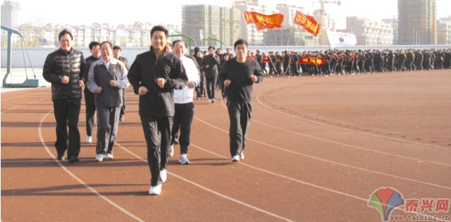 寒冷的天氣絲毫沒(méi)有阻擋我市干部群眾迎接新年的熱情。上午8點(diǎn),來(lái)自四面八方的長(zhǎng)跑隊(duì)伍已經(jīng)匯聚在市三高體育場(chǎng),他們即將從這里出發(fā),開(kāi)始萬(wàn)人長(zhǎng)跑活動(dòng)。長(zhǎng)跑活動(dòng)開(kāi)始之前,首先舉行了升國(guó)旗儀式。 張兆江、高亞梓等市四套班子領(lǐng)導(dǎo)參加了長(zhǎng)跑活動(dòng)。市長(zhǎng)高亞梓向全市人民致新年賀詞。他說(shuō),長(zhǎng)跑是考驗(yàn)?zāi)土、錘煉意志、強(qiáng)健筋骨的有益運(yùn)動(dòng)。人生如長(zhǎng)跑,推進(jìn)“學(xué)趕蘇南、跨越發(fā)展”,建設(shè)幸福美好泰興也像一次長(zhǎng)跑。一年來(lái),我們“學(xué)趕”的腳步始終堅(jiān)實(shí)有力,我們“跨越”的步伐始終豪邁穩(wěn)健。 高亞梓說(shuō),面對(duì)復(fù)雜形勢(shì)和罕見(jiàn)突發(fā)事件的嚴(yán)峻考驗(yàn),全市上下緊緊圍繞市委、市政府決策部署,在迎接挑戰(zhàn)中把握機(jī)遇、在戰(zhàn)勝困難中贏得主動(dòng),跑出了負(fù)重前行的勇氣、爭(zhēng)先進(jìn)位的銳氣和昂揚(yáng)向上的朝氣。 高亞梓說(shuō),全市經(jīng)濟(jì)活力持續(xù)增強(qiáng),各項(xiàng)事業(yè)全面進(jìn)步,社會(huì)發(fā)展日趨和諧,順利通過(guò)省小康縣市驗(yàn)收,在全國(guó)縣域經(jīng)濟(jì)基本競(jìng)爭(zhēng)力百?gòu)?qiáng)縣市中排名升至第46位,躋身中國(guó)產(chǎn)業(yè)發(fā)展能力百?gòu)?qiáng)縣市行列,為“十一五”畫(huà)上了圓滿句號(hào)。2011年是“十二五”規(guī)劃的開(kāi)局之年。新的起點(diǎn),新的征程,任務(wù)艱巨,使命光榮。舉辦元旦萬(wàn)人長(zhǎng)跑活動(dòng),一方面是為了深入推進(jìn)全民健身運(yùn)動(dòng),努力營(yíng)造全民健身的良好社會(huì)氛圍;另一方面也是為了進(jìn)一步激發(fā)全市人民萬(wàn)眾一心、拼搏進(jìn)取的豪情和斗志。 高亞梓希望大家以這次活動(dòng)為契機(jī),再掀全民健身新高潮。同時(shí),把參與健身的精神和毅力轉(zhuǎn)化為工作動(dòng)力,緊緊圍繞“領(lǐng)先蘇中、再創(chuàng)輝煌”的目標(biāo)追求,堅(jiān)持開(kāi)放創(chuàng)新“雙輪驅(qū)動(dòng)”,堅(jiān)定不移走科學(xué)、跨越發(fā)展之路,爭(zhēng)創(chuàng)新優(yōu)勢(shì),實(shí)現(xiàn)新跨越,努力建設(shè)更高水平小康社會(huì),為開(kāi)創(chuàng)“十二五”發(fā)展新局面、開(kāi)啟基本實(shí)現(xiàn)現(xiàn)代化新征程而不懈奮斗。 市委副書(shū)記、市政協(xié)主席張澤民向長(zhǎng)跑活動(dòng)冠名單位——江蘇愛(ài)群商貿(mào)有限公司負(fù)責(zé)人授“貢獻(xiàn)杯”。 市委書(shū)記張兆江宣布長(zhǎng)跑活動(dòng)正式開(kāi)始并鳴槍發(fā)令。 市四套班子負(fù)責(zé)人,市級(jí)機(jī)關(guān)各部門(mén)及有關(guān)單位負(fù)責(zé)同志,在城機(jī)關(guān)干部、企事業(yè)單位職工、社區(qū)居民、學(xué)生以及健身項(xiàng)目展示人員代表,共計(jì)1萬(wàn)2千多人參加了長(zhǎng)跑活動(dòng)。全體人員在此起彼伏的口號(hào)聲中快步向前,浩大的隊(duì)伍沿著南二環(huán)路左轉(zhuǎn)至文江路,最終到達(dá)中興大道,長(zhǎng)跑全程2.6公里。振奮人心的宣傳標(biāo)語(yǔ),雄壯的口號(hào)聲和整齊劃一的步伐聲,組合交織成了迎接新年最凝聚人心的旋律,為泰興新一輪的跨越發(fā)展助威吶喊。 在萬(wàn)人長(zhǎng)跑活動(dòng)線路沿線,來(lái)自泰興鎮(zhèn)各個(gè)社區(qū)的健身隊(duì)伍組成了10多個(gè)健身方陣進(jìn)行健身成果展示。活動(dòng)現(xiàn)場(chǎng)共有15個(gè)健身方隊(duì)300多人參加表演,其中包括幼兒拉丁舞、太極拳、功夫扇、健身舞、秧歌、太極刀等多項(xiàng)群眾健身項(xiàng)目,為整個(gè)元旦長(zhǎng)跑活動(dòng)增添了亮點(diǎn)。 |