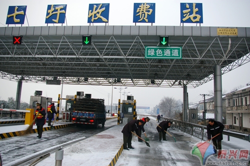 針對可能出現(xiàn)的大雪天氣,七圩收費(fèi)站提前備足了融雪、清雪、防滑物品和設(shè)施,并及時(shí)啟動了“惡劣天氣應(yīng)急處理預(yù)案”,每逢雨雪大霧天氣,全員參與掃雪除冰,防止積雪造成路面冰凍。