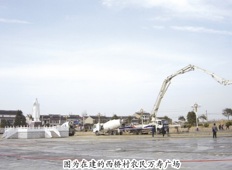 (記者 耿鳳)3月20日,記者在張橋鎮(zhèn)西橋村看到,該村農(nóng)民萬壽廣場正在加快建設(shè)之中,力爭7月1日建成。西橋村黨總支書記袁瑞林介紹,該廣場總面積1.1萬平方米,總投資近350萬元。廣場地面為一張百壽圖,由99個(gè)“壽”字組成一個(gè)大“壽”字,象征西橋村人民平安富裕、健康長壽。 “我們將力爭在3-5年內(nèi),初步建成西橋生態(tài)觀光園,把西橋村打造成蘇中生態(tài)第一村、農(nóng)業(yè)觀光休閑第一村、高效農(nóng)業(yè)第一村,形成生態(tài)最佳、環(huán)境最美的生態(tài)高效、觀光休閑農(nóng)業(yè)發(fā)展基地,通過10年左右的努力,力爭建成全國鄉(xiāng)村生態(tài)觀光休閑示范點(diǎn)。在建的西橋村農(nóng)民萬壽廣場是其中最具特色的景點(diǎn)之一。”袁瑞林告訴記者,廣場緊鄰禮儀大道,旨在為村民及各地游客提供休閑、觀光的場地。村民可以將其作為晨練、健身的場所;游客可以通過廣場對(duì)西橋村作進(jìn)一步了解。廣場臨水而建,設(shè)置有雕塑、特色綠化、名人碑記、噴泉等。三層觀光塔的設(shè)置,是整個(gè)園區(qū)的景觀制高點(diǎn),全園景色盡收眼底。 西橋村將堅(jiān)持“以人為本、建園為民”原則和以規(guī)劃為龍頭、以市場為導(dǎo)向、以效益為中心、以市場化運(yùn)作為主體,倡導(dǎo)以生態(tài)環(huán)境建設(shè)為基礎(chǔ)、大眾游憩為核心、景觀形象塑造為手段的三位一體的景觀設(shè)計(jì)手法,根據(jù)規(guī)劃要求,綜合平衡生態(tài)、景觀、休閑三大主導(dǎo)功能,使西橋成為可賞、可學(xué)、可游的生態(tài)佳境,并通過廣泛吸納工商資本、民間資本、外商資本、上爭扶持資金等投入,將高產(chǎn)值農(nóng)林產(chǎn)品、先進(jìn)技術(shù)、旅游服務(wù)和品牌塑造相結(jié)合,將農(nóng)耕文化、地域文化和民俗文化相結(jié)合,深度拓展農(nóng)林經(jīng)營和服務(wù)功能,建設(shè)高效銀桑、銀果、銀經(jīng)生產(chǎn)基地。按近期、中期、遠(yuǎn)期規(guī)劃,到2015年建成鄉(xiāng)村旅游觀光點(diǎn)15個(gè)以上,綠化覆蓋率85%以上,吸引游客3萬人次以上。到2020年,西橋生態(tài)休閑園基本形成,建成鄉(xiāng)村旅游觀光點(diǎn)40個(gè)以上,吸引游客10萬人次以上。 |