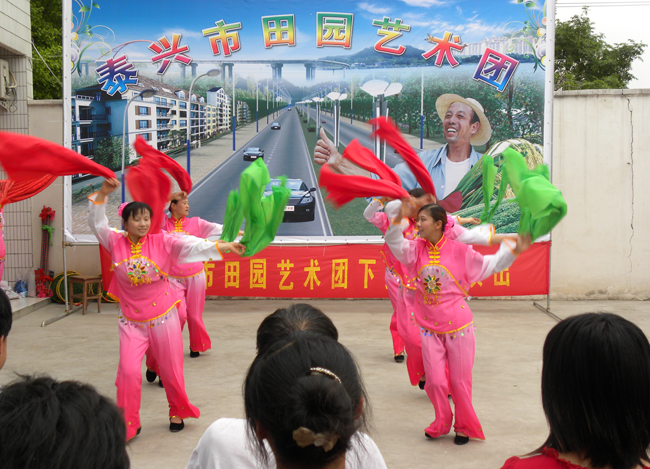 (特約記者 游潔 陳永華 記者 孫紀(jì)剛)在我市虹橋鎮(zhèn),活躍著一支由當(dāng)?shù)剞r(nóng)民組成的田園藝術(shù)團(tuán),他們常年走村進(jìn)戶表演自編自演的節(jié)目,為群眾送去了歡歌笑語。 5月10日下午,田園藝術(shù)團(tuán)的成員來到虹橋鎮(zhèn)涌興村,為村民們送上了《開門紅》、《人勤春早》、《花船》等精彩的節(jié)目。演員們聲情并茂的表演,受到了當(dāng)?shù)厝罕姷臒崃覛g迎。虹橋鎮(zhèn)九圩村村民湯愛鳳說:“他們每次排演這些節(jié)目的時候,我都要去看;他們下村演出,我也跟在后面看,我就是喜歡看這些節(jié)目。” 今年53歲的朱圣龍是田園藝術(shù)團(tuán)里最為忙碌的一個,既是藝術(shù)團(tuán)的總策劃,又是一個名副其實的音響師。朱圣龍一直對“鄉(xiāng)土文藝”癡心不改,過去經(jīng)常和村里的幾個文藝愛好者一起,組成文藝小分隊四處演出,每年演出將近兩百場次。2010年4月份,他干脆把十幾個志同道合的村鄰召集起來,成立了一個“田園藝術(shù)團(tuán)”,自己投入六七萬元,購置了音響設(shè)備、服裝道具等用品,干起了專業(yè)的“鄉(xiāng)村演員”。田園藝術(shù)團(tuán)的演員們沒有工資,而且都是利用晚上的時間排練節(jié)目。朱圣龍說:“大家純粹是出于一種愛好,發(fā)揮自己的特長,為群眾表演大家喜愛的節(jié)目,提高農(nóng)村文化建設(shè)水平,為新農(nóng)村建設(shè)作出自己的一點貢獻(xiàn)。” 今年,田園藝術(shù)團(tuán)還結(jié)合虹橋工業(yè)園區(qū)翻天覆地的變化和經(jīng)濟社會發(fā)展取得的喜人成果,精心排練了二三十個新節(jié)目,并且全部通過了文化部門的審核,獲得了較高評價。劇團(tuán)編劇袁龍春表示,今后將以豐富農(nóng)村文化為目標(biāo),努力創(chuàng)作出更多貼近生活、服務(wù)農(nóng)村的歌舞節(jié)目,奉獻(xiàn)給廣大群眾,為他們帶來精神上的享受。 |