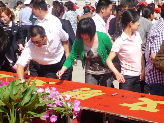 姜文湘作了動員講話。他指出,城市公共交通是城市文明的窗口,代表著一個城市的形象,直接反映了城市的管理水平和文明程度。近一段時間,我市交通環(huán)境整治雖然取得了一定的成效,但闖紅燈、機非不分、不戴頭盔等違規(guī)行為仍時有發(fā)生,與我市“四城同創(chuàng)”的要求還有不小的差距。他希望廣大市民從自身做起,切實增強文明交通意識,嚴格遵守各項交通法律法規(guī),杜絕不文明交通行為。同時,市交警部門將加大執(zhí)法力度,堅決糾正各類交通違規(guī)行為。 啟動儀式上,出租車駕駛員封紀貴宣讀了文明出行倡議書,交警大隊、社區(qū)志愿者、汽運總公司、公交公司、出租車公司以及;饭镜确疥嚧碓“文明交通,從我做起”的條幅上簽名。